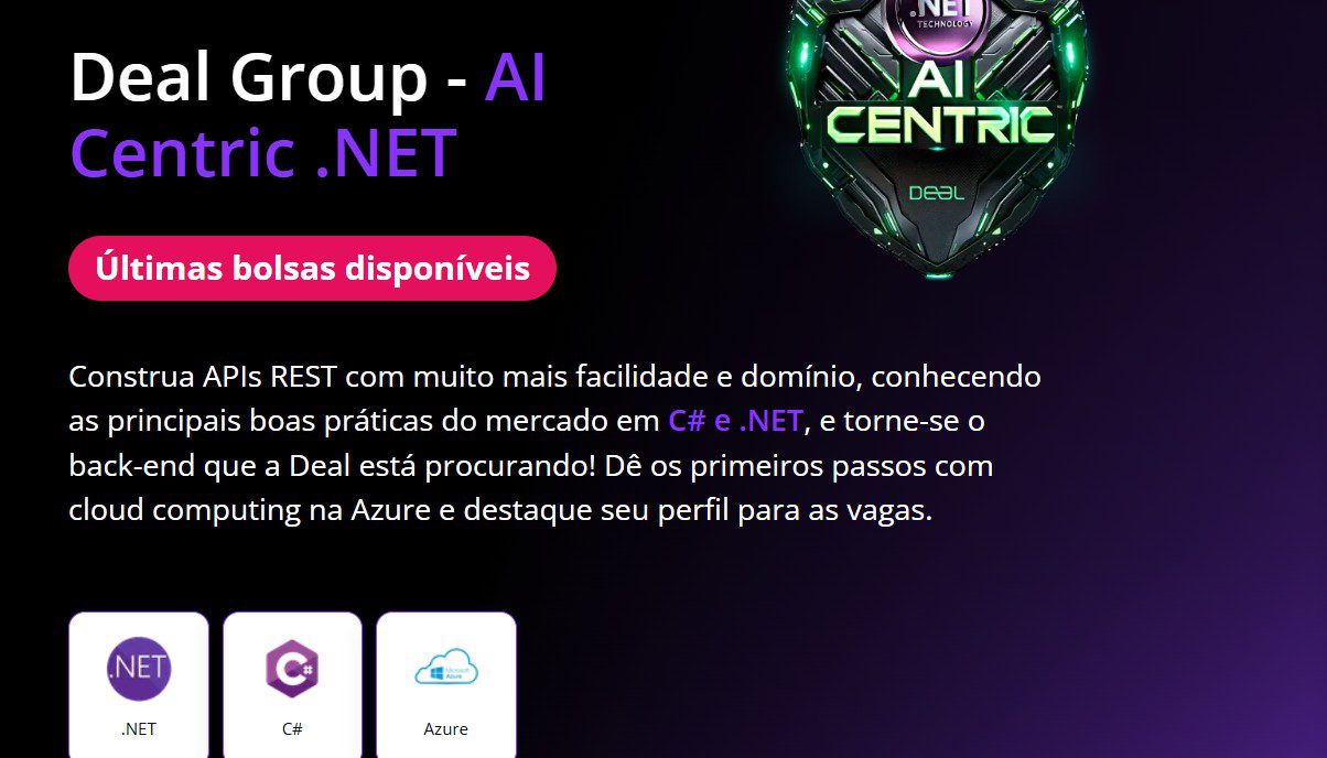 Para participar, se inscreva pelo link: https://www.dio.me/bootcamp/deal-group-ai-centric-net