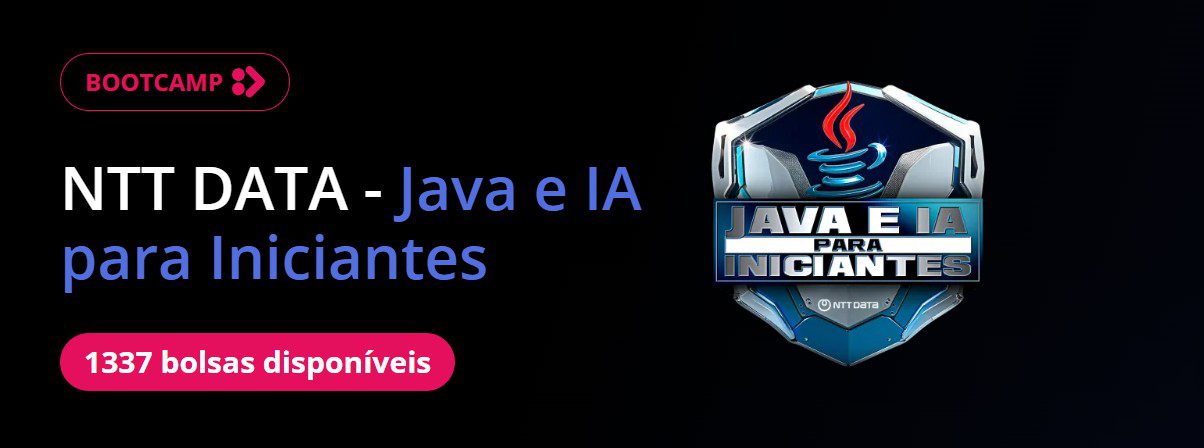 A NTT Data, em parceria com a plataforma DIO, lança o bootcamp gratuito “Java e IA para Iniciantes”. O programa tem como foco a capacitação de talentos na área de desenvolvimento de software. As inscrições estão abertas até 13 de julho.