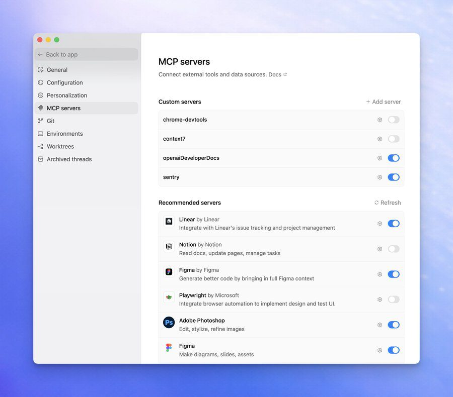 Isso permite que o Codex utilize contexto em tempo real.