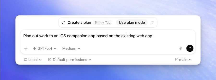 O modo Plan permite que o Codex analise o problema antes de começar a escrever código.