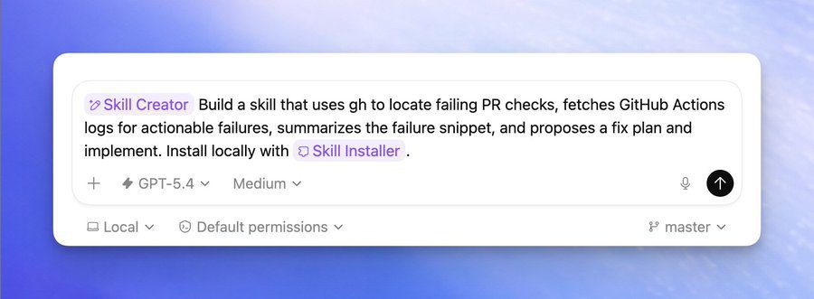 Dica: novos usuários aprendem mais rápido começando com tarefas simples, como perguntar ao Codex sobre o código ou pedir uma pequena correção. Usar digitação por voz no aplicativo Codex também pode acelerar iterações.